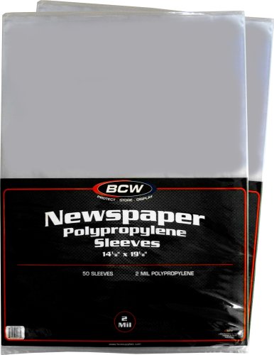 The BCW Newspaper Sleeves are an acid free, archival quality product made of crystal clear 2mil thick polypropylene. The sleeves are flush cut on one edge of the shorter side. Great for storing newspapers unfolded so the entire article can be read!