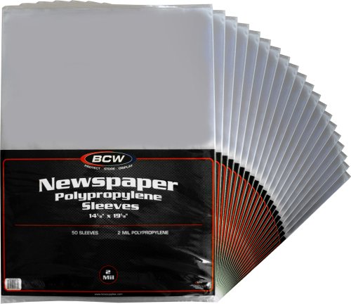 The BCW Newspaper Sleeves are an acid free, archival quality product made of crystal clear 2mil thick polypropylene. The sleeves are flush cut on one edge of the shorter side. Great for storing newspapers unfolded so the entire article can be read!