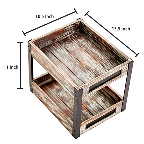 Rustic desktop organizer trays with made with metal and distressed torched wood finish.Features 2 stacked trays with metal stands and erasable chalkboard labels.