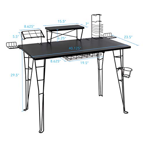 FEATURE RICH - this gaming computer desk includes a charging stand for your tablet or smart phone, speaker stands, game storage, under-desk basket, controller stand, built-in wire-management, rear power strip holder, cup holder and headphone/VR headset hook