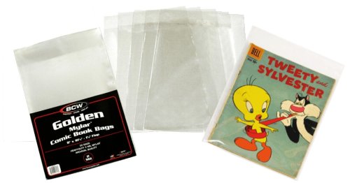 These 2 mil Comic Book Bags are made of Archival Polyester (Mylar) an inert material of the highest clarity. Mylar will not discolor, damage, or adhereto items placed inside it. It is a sturdy film that beautifully displays, timelessly protects and gives extra support to fragile documents.Resistance to moisture, insect attack, fungus, mold, mildew, acid, oils, grease, and solvents. Mylar contains no dangerous plasticizers, slip additives, surface coatings, antioxidants, acid- hydrolysis. This bag is a semi- rigid bag and does not require the use of a backer board. But if you do use a backer board be sure to only use certified acid free boards.Holds 1 Golden Age Comic