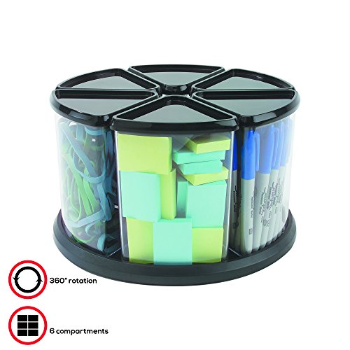 Keep your office and craft room organized and in place with Deflecto’s Rotating Carousel Organizer! Includes six 6" removable canisters that will keep your small items organized and within reach. With a 360 degree spin, the base conveniently rotates in either direction to give you easy access to your office or classroom items, arts and crafts supplies or breakroom replenishments. The clear canisters allow you to see your supplies at a glance so you can find what you need quickly. Snap-tight lids keep small supplies secure and prevent them from spilling out making the canisters ideal for storing glitter pens, embellishments, decorative papers, tape, highlighters and more! Carousel organizer makes it easy to keep your items neatly arranged so you can work on your projects without worrying about cleaning up the mess. Ideal for use in your home, office space, craft room, garage, classroom or breakroom, Deflecto’s Rotating Carousel Organizer is a convenient and versatile solution that will help you get organized and stay organized!Includes six 6" removable canisters that will keep your small items organized and within reach! Ideal for storing office tools and craft supplies including glitter pens, embellishments, and more