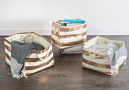 Get creative with fun designs and colors that are easy to mix and match. Add some sparkle with metallic or bring color and interest to a dull room with vibrant hues and a sophisticated look while also adding functionality. These trendy bins have become very popular due to their simple yet chic look, versatility, and dependability.