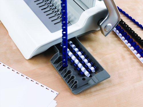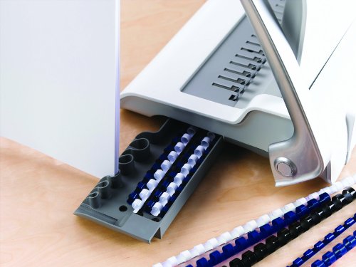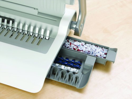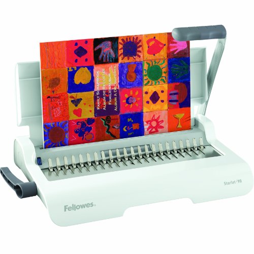 Designed for occasional binding needs in the home, office, or classroom, the Fellowes Starlet Comb Binding Machine punches up to 7 sheets at a time and binds up to 90 sheets with a 1/2 Inch comb. Vertical document loader ensures consistent punch alignment. Efficient design allows user to punch and bind in a continuous manner. Adjustable edge guide accurately centers documents. Document thickness/comb guide helps user select proper comb width. A convenient built-in comb storage tray keeps supplies handy.For occasional home, office, or student use