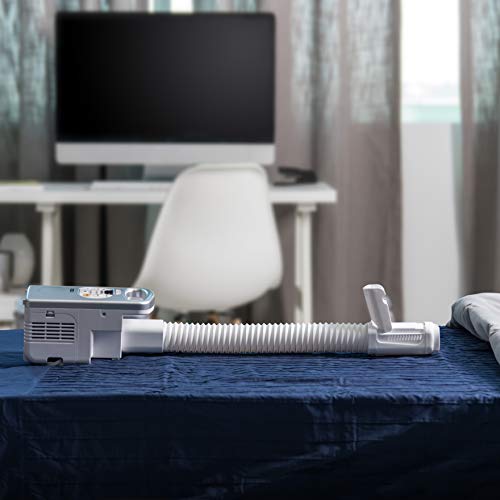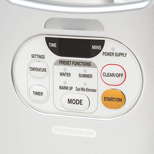 Keep your blankets and mattress cozy, warm, and dry with this blanket warmer from IRIS USA, Simply slide the hose under the blanket, let it run, and you’ve got a toasty spot to curl up into. Preset functions let you set the blanker heater to run to create ideal warming conditions for winter, summer, and when you just want that little bit of warmth added in, or adjust the time and temperature manually to exactly suit your needs. The hinged air flap can be opened during use to promote superior air flow. The electric blanket warmer also provides an option to help eliminate dust mites. The included shoe dryer attachment makes drying cold, damp shoes easy. This versatile little heater is the perfect way to warm things up around your home.Warm and dry your blankets with this easy to use blanket warmer