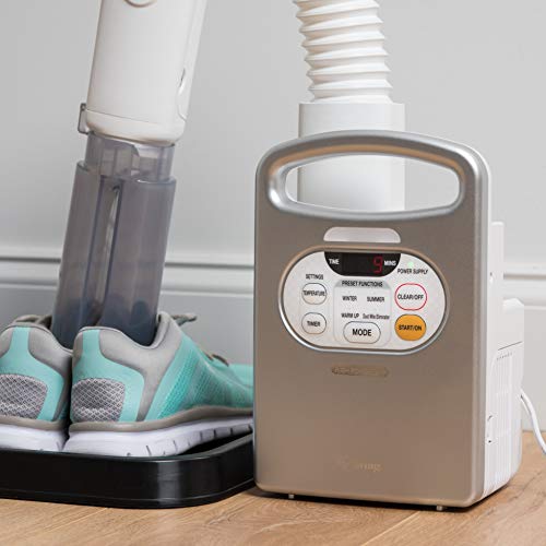 Warmer comes equipped with shoe drying attachment to easily dry damp shoes