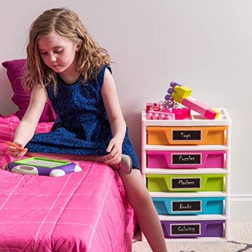This 5-Drawer Activity Chest has both function and style. Organize art and activity supplies, puzzles, games, books, and more with this storage set. The chalkboard label on each drawer helps to easily identify contents while allowing kids to personalize the chest. Keep the most needed items organized with the organizer top so that they are always in reach. Made in the USA!Accomodates 8.5" x 11" sized paper, books, and activity pads