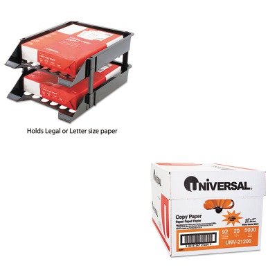 lt;stronggt;DEF63304lt;/stronggt;lt;BR/gt;Deflect-o Super Tray Unbreakable Countertop Tray Setlt;BR/gt;Industrial-duty trays are strong enough to hold heavy items, but are lightweight and not bulky. Labeling area on each tray labels not included. Stacks with matching plastic risers. Durable plastic. Two trays plus four 3amp;quot; and four 5amp;quot; plastic risers per set. Desk Tray Type: Front Load Holds Paper Size: LegalLetter Width: 11amp;quot; Depth: 14 3/4amp;quot;.lt;BR/gt;lt;BR/gt;lt;stronggt;UNV21200lt;/stronggt;lt;BR/gt;Deflect-o Super Tray Unbreakable Countertop Tray Setlt;BR/gt;For copiers. Great for everyday use. Acid-free for archival quality. This product was made from wood that came from a certified managed forest. Size: 8 1/2 x 11 Paper Colors: White Paper Weight: 20 lb Sheets Per Unit: 5,000.
