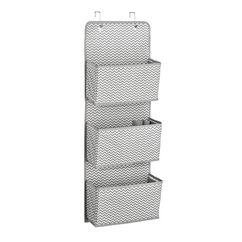 STYLISH STORAGE: These soft storage organizers keep desk and office clutter under control by storing all of your office supplies in one convenient place; Simply hang over interior doors or closet doors; Two metal over-the-door hooks with a chrome finish are included; Fits over interior doors up to 1.75" / 4.4cm thick; The item can also be mounted to the wall, simply use the holes with reinforced metal grommets at the top of the part to hang (mounting hardware is not included)