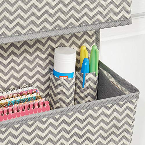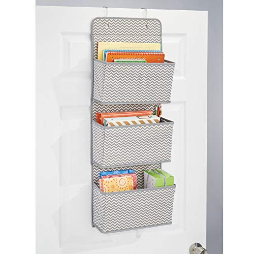 Create extra storage in your home office or work space with the Fabric Over the Door Hanging Storage Organizer from mDesign. Hang organizers over interior doors with the two included hooks for quick and easy storage. The deep pockets keep items secure when you open and close doors. Two smaller pockets in the middle hold smaller supplies like pens, pencils, and highlighters. mDesign - more calm, less clutterINSTANT ORGANIZATION: Store and organize file folders, tablets, notebooks, pens, pencils, books, letters, envelopes, magazines, catalogs, scissors, and more; The middle pockets features two smaller sections to keep little items secure; Great for storing personal items, such as cell phones, headphones, water bottle, reading glasses and other office needs; Set of 2