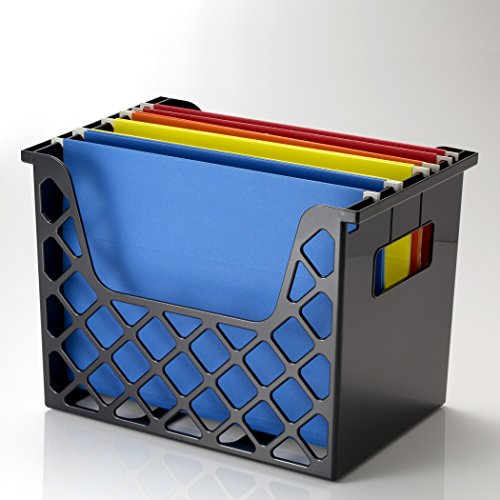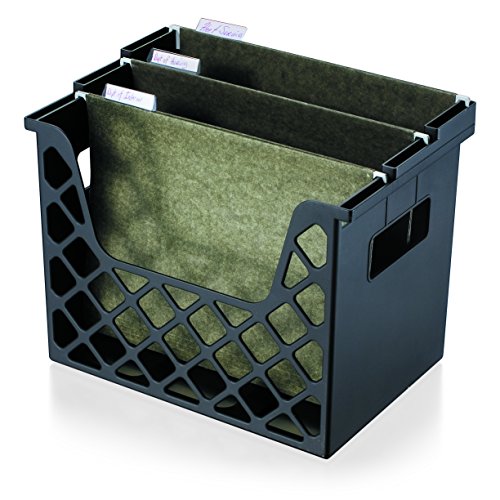 Holds letter size hanging files securely and conveniently organized on desktop. Stepped inserts alow for viewing of file tabs. 33% more capacity than standard organizers. Hand grips for easy portability. Made from 30% post-consumer recycled plastic. Black.Holds letter size hanging files conveniently on desktop or at work area.