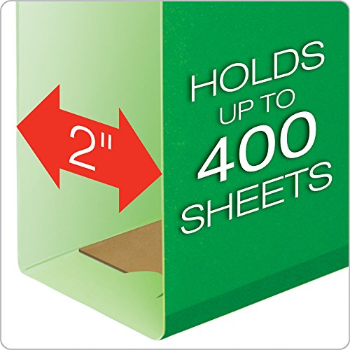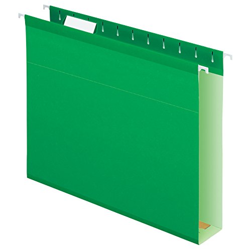 Pendaflex Extra Capacity Reinforced Hanging Folders are ideal for large, bulky files. The pressboard-reinforced insert allows them to expand 2" for up to 400 sheets. Poly laminate strips across top edge and bottom fold combat tears and rips. Includes an 8.5" x 11" printer-ready label sheet and clear tabs for placement in 5 positions. Paper made from 10% recycled fiber with 10% post-consumer fiber. Letter size, bright green. 25 per box.2" Expansion for up to 400 sheets; includes pressboard-reinforced insert for extra support on bottom panel