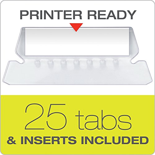 Includes clear repositionable tabs and an 8.5" x 11" printer-ready label sheet; 25 per box
