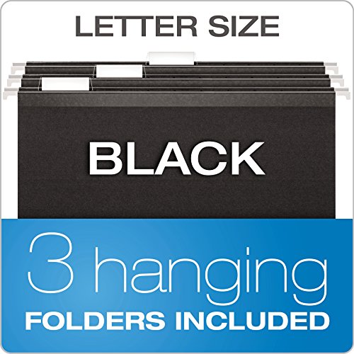 Includes 3 black Pendaflex Reinforced Hanging Folders with 3 clear plastic tabs and extra paper inserts
