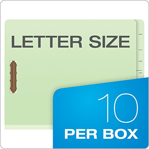 Pendaflex Pressboard End-Tab Classification Folders help you get more out of your open-shelf filing system. Sturdy 25-pt. pressboard covers and a 17-pt. kraft divider provide 4 total fastener surfaces. A tear-resistant Tyvek color-matched spine expands 1.75" to hold up to 350 sheets. A full-length tab provides plenty of room for handwriting or labels. Covers made from 60% recycled fiber with at least 30% post-consumer fiber; dividers made from 10% recycled fiber with at least 10% post-consumer fiber. Letter size, light green. 10 Per box.Pressboard end-tab folders create a file within a file for easy storage and access