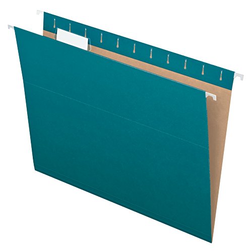 Pendaflex Recycled Hanging Folders provide a smart option for everyday filing. Color folders are made from 100% recycled fiber with 60% post-consumer fiber. A kraft paper interior prevents misfiling between folders. Includes a printable label sheet and 25 clear 1/5-cut tabs. Letter size, teal. 25 Per box.For basic filing needs