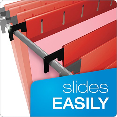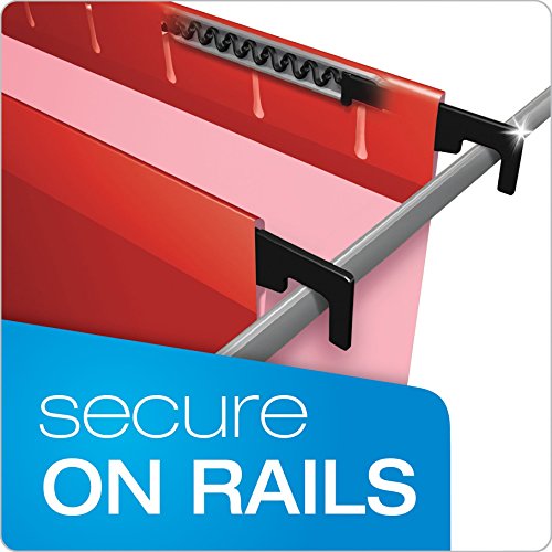 Look no further for one of the smartest, most innovative hanging folders around. Features SureHook technology with revolutionary built-in tension Springs. Rods bend less while folders stay on rails and slide with ease. Rods and hooks are stronger and sturdier. Folders work with existing systems. Patented polylaminate reinforced tops and bottoms provide strength. Lighter interior colors help prevent misfiles. Includes tabs and inserts.Super strong hanging rod features longer plastic hooks with built-in tension springs so folders stay on track, slide more easily, and don't buckle under pressure