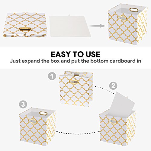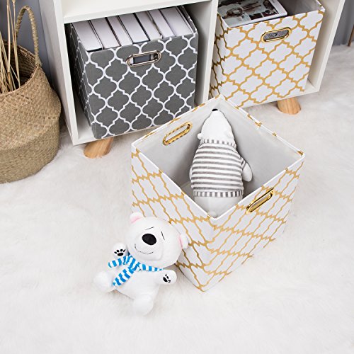 Every bins can be tucked away in closets, dressers,side tables, under beds, in storage cubes, or a shelf for laundry room,nursery, craft room, dorm,cars, pantries, toy rooms, bathrooms, kitchens and offices,Play Area, Girls or Boys Room, Guest Room, Master Bedroom, Playroom, Living room, Dining room.EYE-CATCHING PATTERN- The collapsible storage cubes is thick fabric-covered, the pattern with their shiny gold lantern and gold finished handles is eye-catching, will win many compliments for you