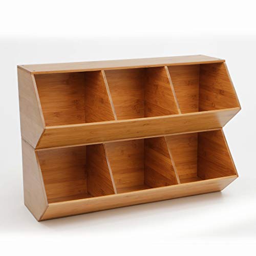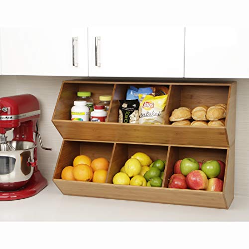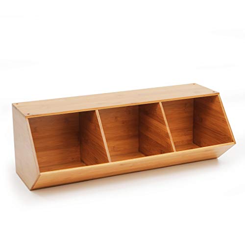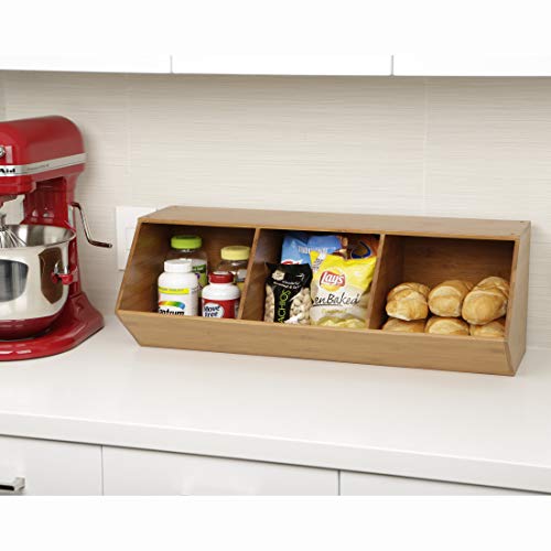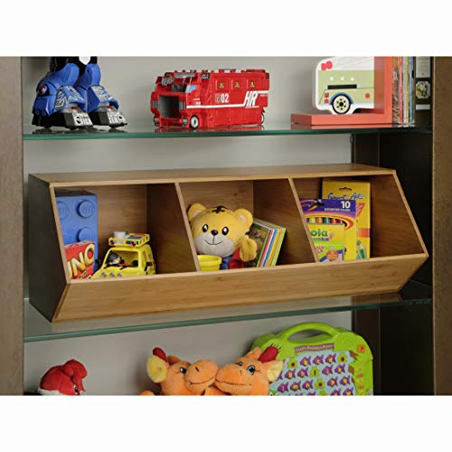 Get organized today with Seville Classics' 3-bin bamboo stackable storage cubby. This uniquely designed organizer is constructed of solid bamboo for a beautiful and durable unit that's easy to use around the home or office. Stack multiple units for a sturdy, expandable storage system. Our unit is food safe, and designed for kitchens as food storage, a kitchen tool organizer, or even a candy dispenser. The opening to each compartment measures 8.75 inches wide by 7.1 inches high. Store up to 15.4 lbs per compartment and up to 46.2 lbs. per unit evenly distributed. Use it by your home's entryway as wooden stackable shoe rack. Stack up to three units with the included stacking hardware. Store toys, stationary, crafts, office and more!