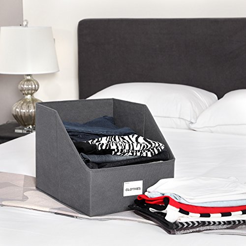 TILT-CUT OPEN CLOTH ORGANIZERS: Tilt-Cut Storage Bins with front cut makes finding things convenient; it allows easy access when put on the highest shelf