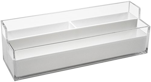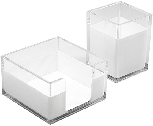 Enjoy a modern clear acrylic and white lacquer-like combination. Great gift for busy and organized professionals. Complements any décor. Sturdy and lightweight. Measures approximately: (Medium Tray Holder) 11.75" L x 3.5" W x 3.50"; (Note Pad Holder) 4.50" L x 4.50" W x 4.50"; (Cup Holder) 3" L x 3" W x 3"
