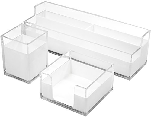 ACRYLIC DESK ORGANIZER (3-PIECE SET ) - Accent a workspace and store office supplies with stylish desk organizer set - Features Medium Tray Holder, Note Pad Holder, and Cup Holder - Coordinates perfectly with the Sorbus Acrylic Desk Paper File Holder (sold separately)