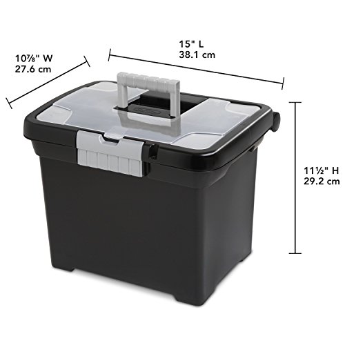 Sterilite 18719004 Portable File Box, Black with Clear Storage Lid and Titanium Handle and Latch, 4-PackOutside Dimensions: 15 x 10.88 x 11.5
