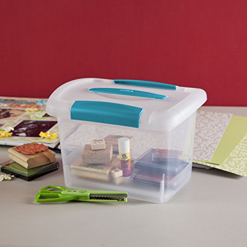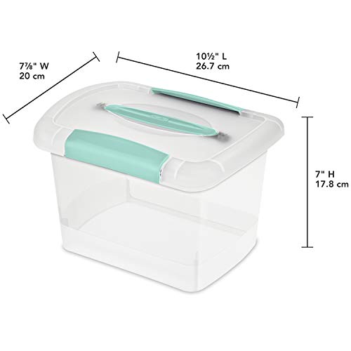 The Small Nesting ShowOffs are a great solution for storing, organizing and carrying small items around the home, office, garage, or classroom. Durable latches ensure that the lid remains securely attached to the base, and a comfortable handle helps with sturdy, one-handed carrying. The see-through base allows for easy identification of the contents inside. This storage box conveniently accommodates small craft supplies, CDs and more.Outside Dimensions: 10.5 x 7.88 x 7