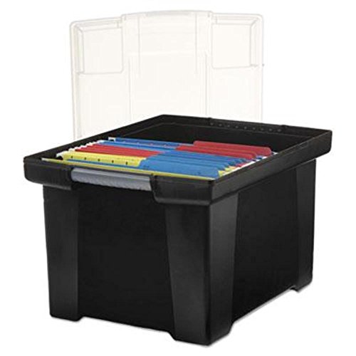 Storex Plastic File Tote For storage that needs to be quick and simple there s the Storex Storage Tote. Accommodating of hanging folders and water-resistant, the storage tote is a great alternative to cardboard banker boxes. The snap on lid or locking handles ensure that tote contents stay put through tosses and tumbles. Box Style: Portable Storage Box Type: Storage Material(s): Plastic Strength: Heavy-Duty. Unit of Measure : Each Brand StorexEasy to use