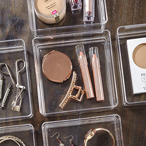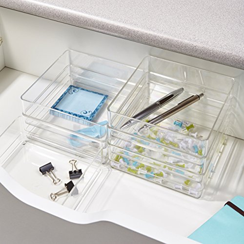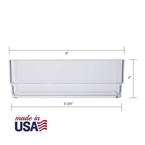Time to get your drawers organized! With many applications and configurations, these individual organizers can fit side by side to divide and contain all of your desk drawer clutter. Perfect to keep makeup palettes and other cosmetics organized in your vanity and bathroom drawers! Each of the containers can stack on top of each other allowing for easy access to items below. Great for deep drawers! Accessories shown are not included. No assembly required. Made in USA.VERSATILE drawer organizers proudly made in the USA