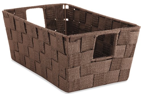 Whitmor’s woven shelf totes are a stylish way to store and organize spaces in your home or office. These fashionable storage totes can be displayed or used to organize bookcases, desks, open shelving or entertainment centers. They are made a durable wipe-clean polypropylene fabric strapping and steel epoxy coated frame with convenient integrated handles. Measures: 6.5”L x 11.42”W x 4.53”H.. Whitmor is a 4th generation family-owned and operated business. Since 1946, Whitmor has been dedicated to bringing organization home by creating products that simplify everyday life. Ensuring that those products are built with integrity, value, and innovation is our commitment to you. And our promise is that we will always be here for you should you ever need us as we stand behind our product 100%. Whitmor customer service is available in English and Spanish Monday through Friday from 8am - 4:30pm CST. Call us and we will gladly assist you in your language. Whitmor customer service Department, 1-888-944-8667Durable handwoven strapping with epoxy coated metal frame; built in handles for easy transport